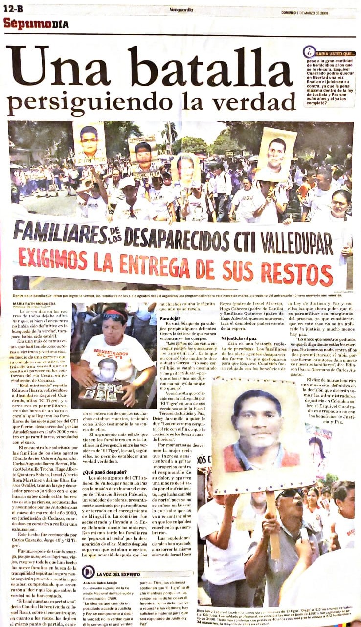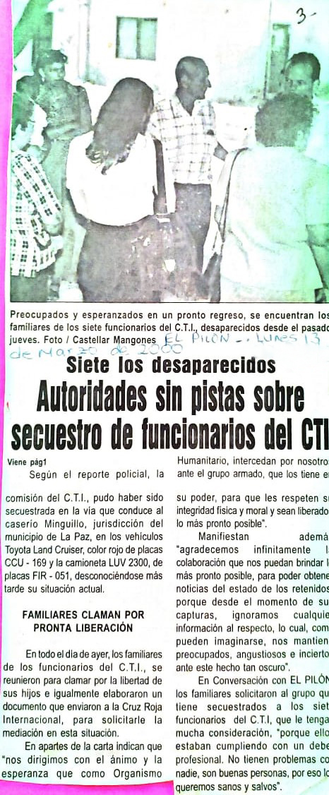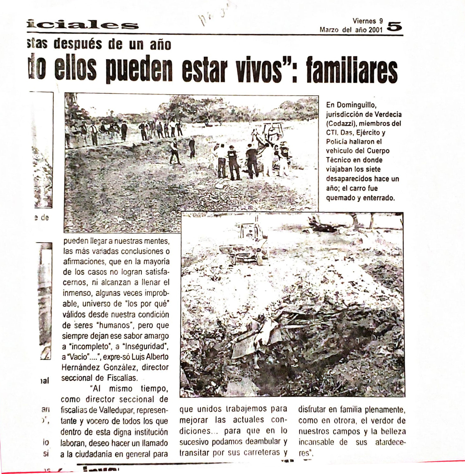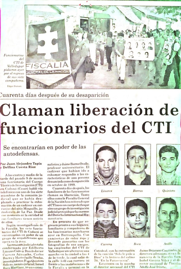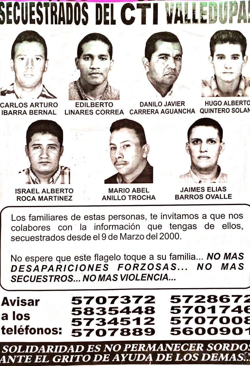 El 9 de marzo del 2000 siete agentes del CTI se dirigen a la Finca la Holanda en el municipio de la Paz a 12 kilómetros de Valledupar, su objetivo era realizar una diligencia referente al caso de desaparición de un vendedor de paletas llamado Alcides Tiburcio Rivera Palencia, sin saber que allí encontrarían su propia desaparición a manos del Bloque Norte de las Autodefensas Unidas de Colombia -AUC- al mando de Rodrigo Tovar Pupo alias “Jorge 40”.