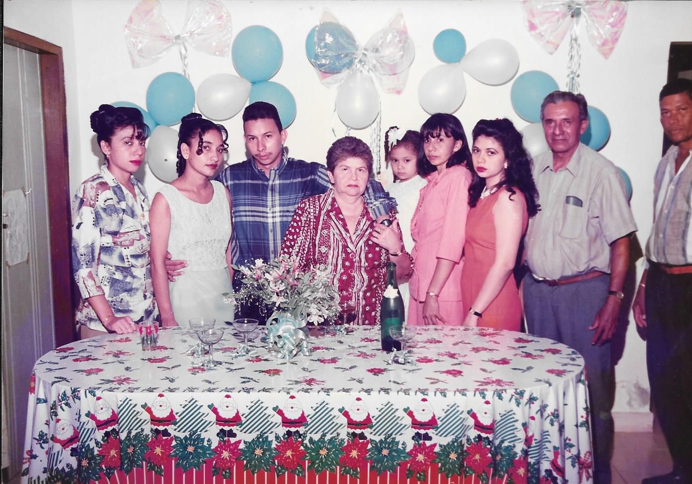 Mi familia está conformada principalmente por mis dos padres, 4 hermanos, mi esposa y soy padrino de mi primera sobrina.